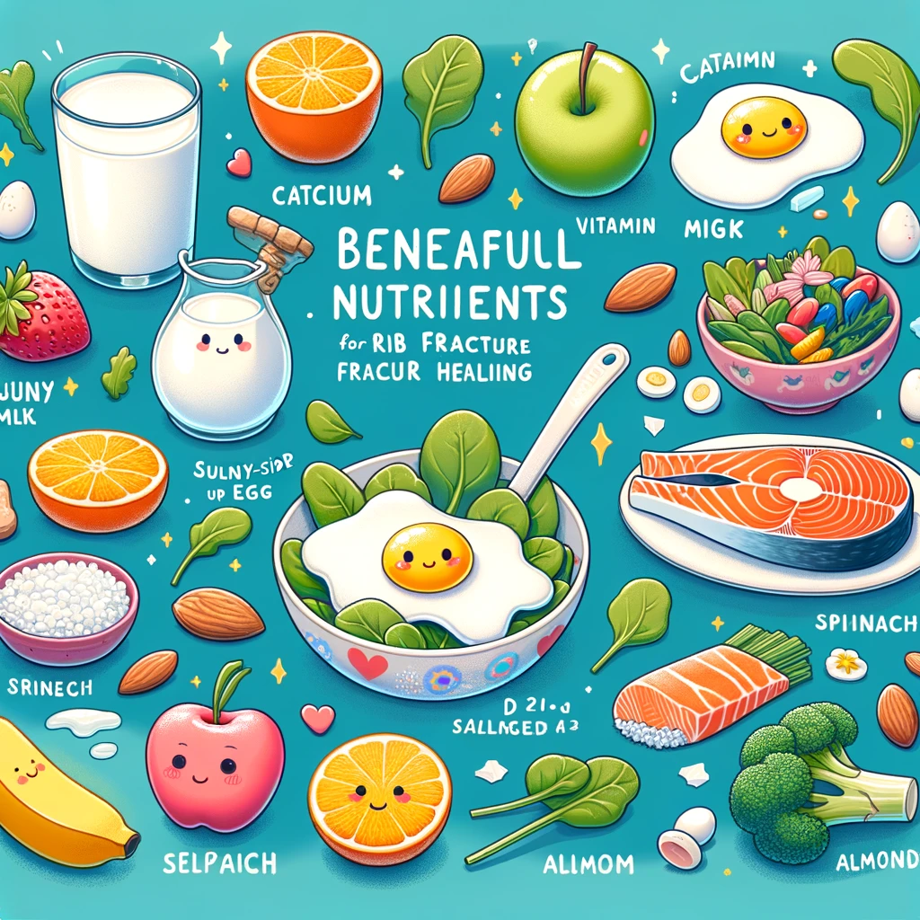 갈비뼈에 금 간 후에는 우리 몸이 더 잘 치유될 수 있도록 건강한 음식을 먹는 것이 중요해요. 칼슘과 비타민이 풍부한 음식, 예를 들어 우유, 치즈, 요구르트, 녹색 채소를 먹으면 뼈가 튼튼해져서 빨리 나을 수 있어요. 단백질도 중요한데요, 닭고기, 물고기, 콩과 같은 음식들이 좋답니다.